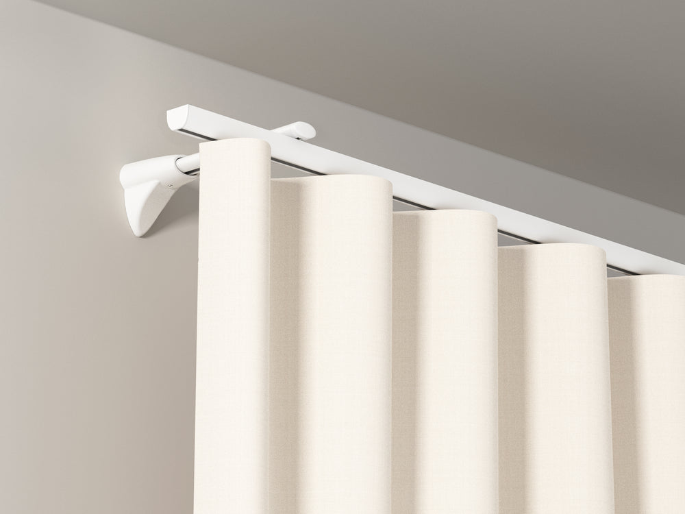 The rail system model 410 fits perfectly into any room due to the filigree and elegant design. The aluminum profile and metal hooks make the rail very strong and dimensionally stable. It is wonderfully suitable for the attachment of our curtains.