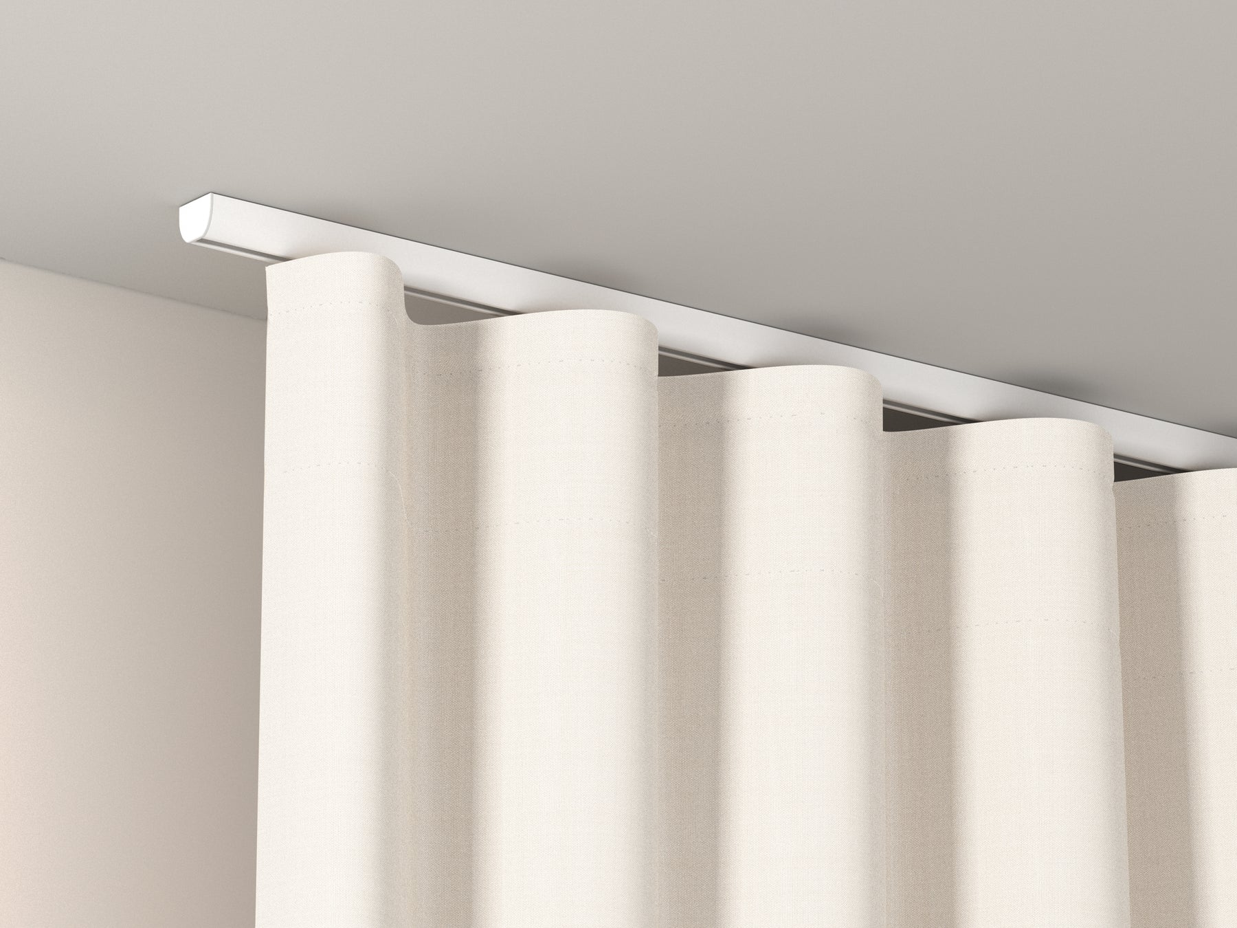It is possible to attach the rail system to the ceiling using quick-release clamps including screws and plugs. These quick-release clamps are screwed separately to the ceiling and thus prevent the gliders from getting caught on the screws.