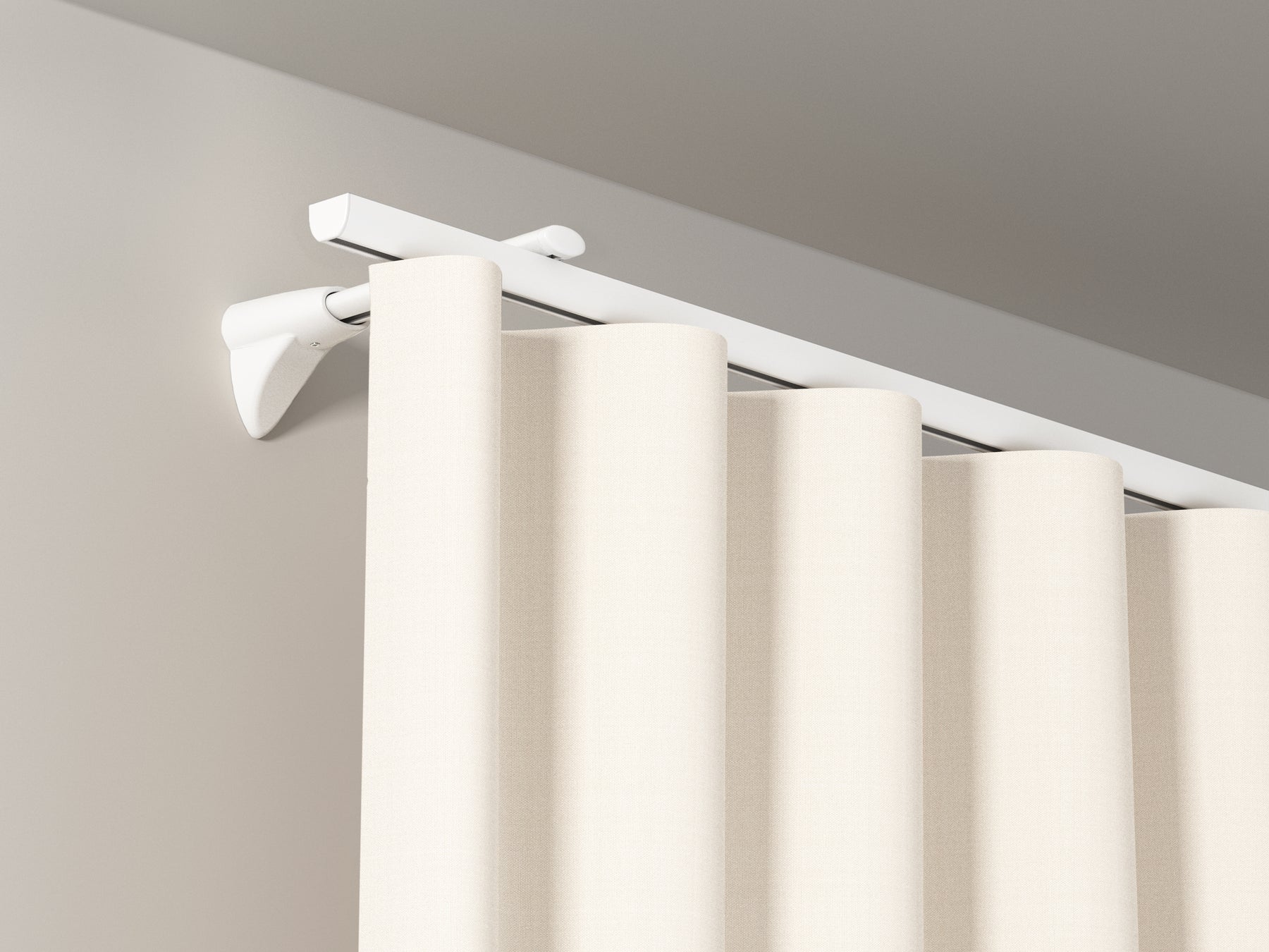 Handling is therefore very easy and the curtains can be drawn without any problems. The metal hooks support this and allow the curtain to glide with ease. Alternatively, the rail can also be mounted on the wall using universal brackets.