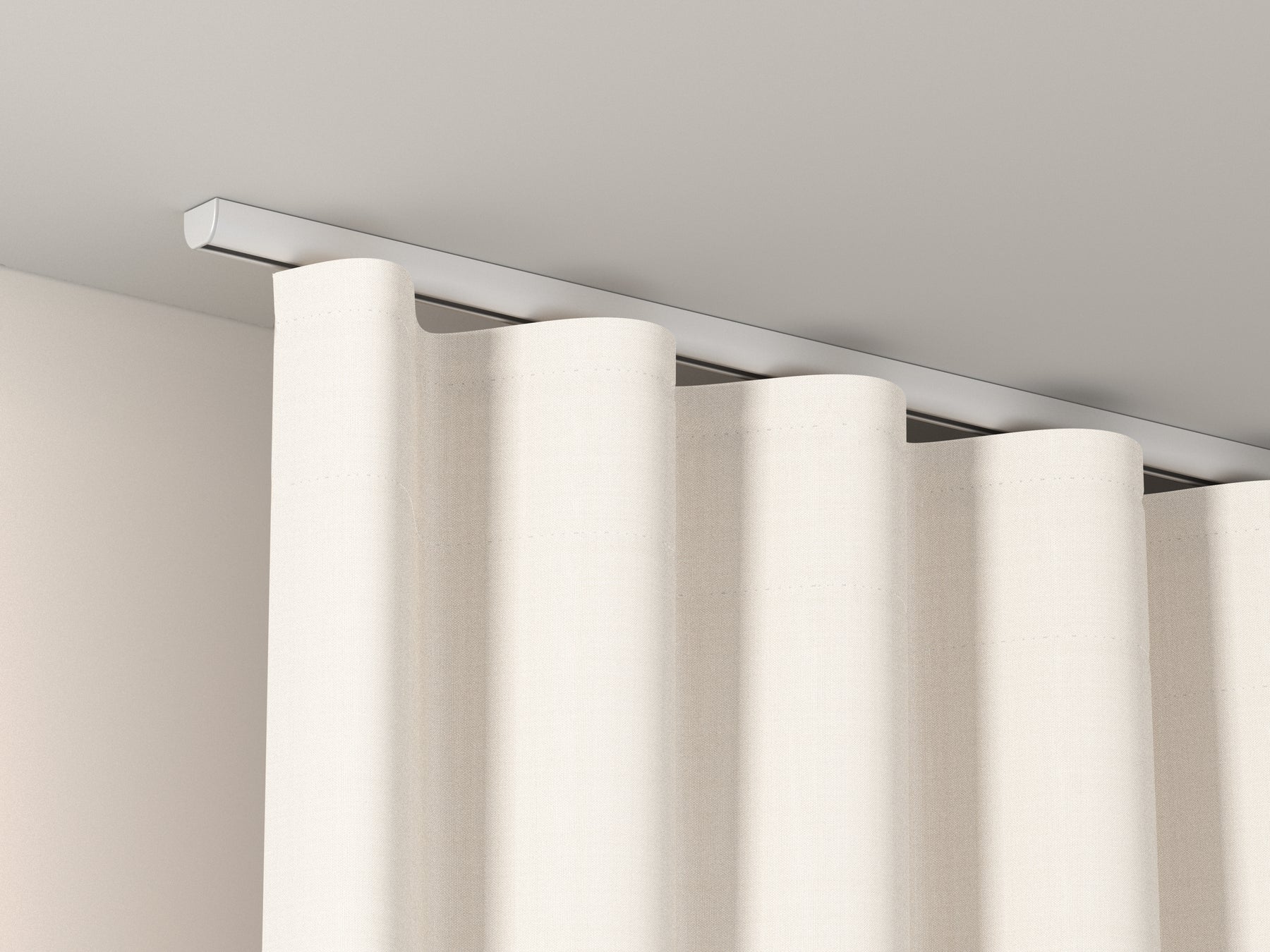 It is possible to attach the rail system to the ceiling using quick-release clamps including screws and plugs. These quick-release clamps are screwed separately to the ceiling and thus prevent the gliders from getting caught on the screws.